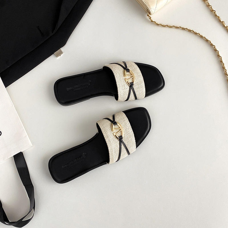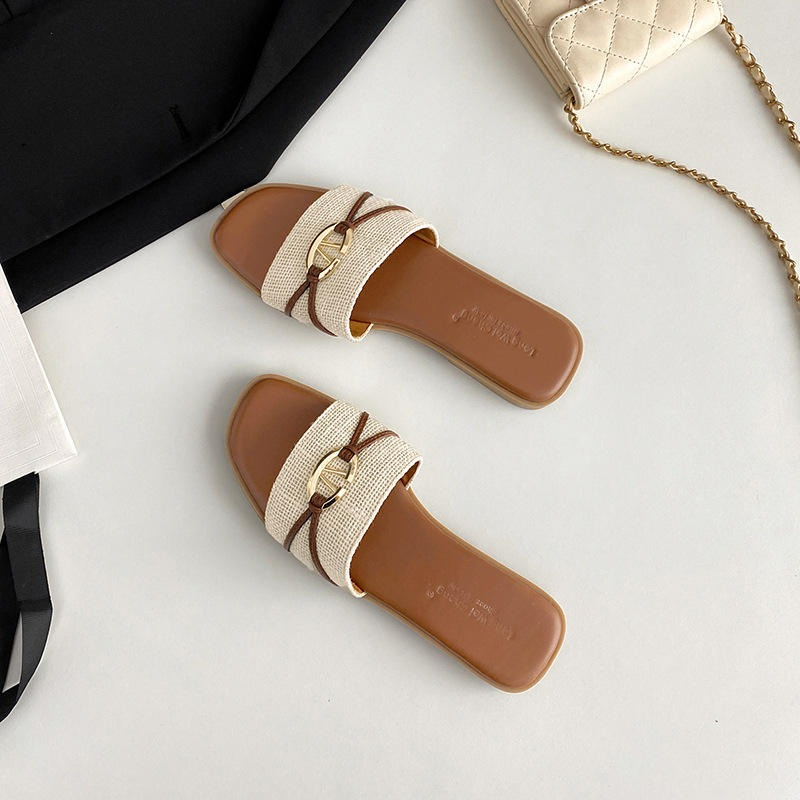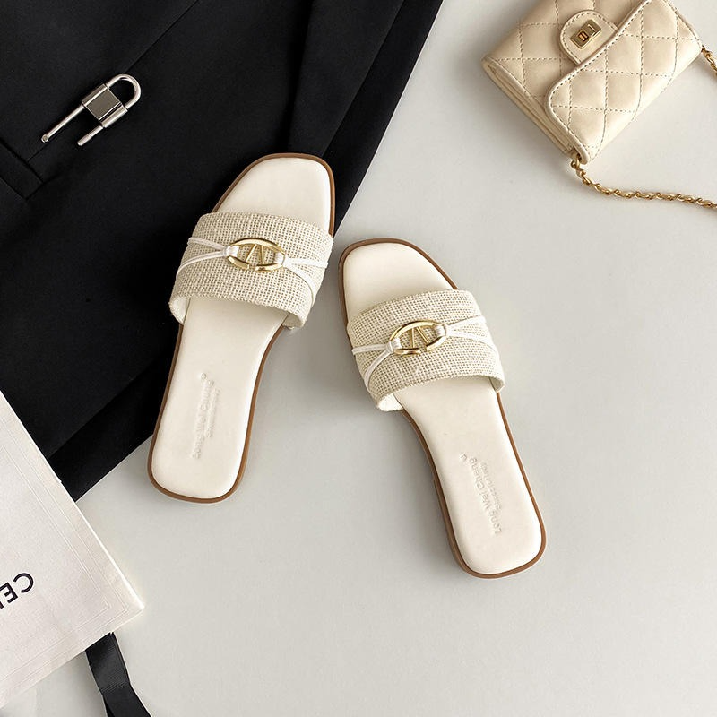 Summer 2026 new style fashionable letter-patterned slip-on wedge sandals for women, with detachable slippers, fairy-style flat